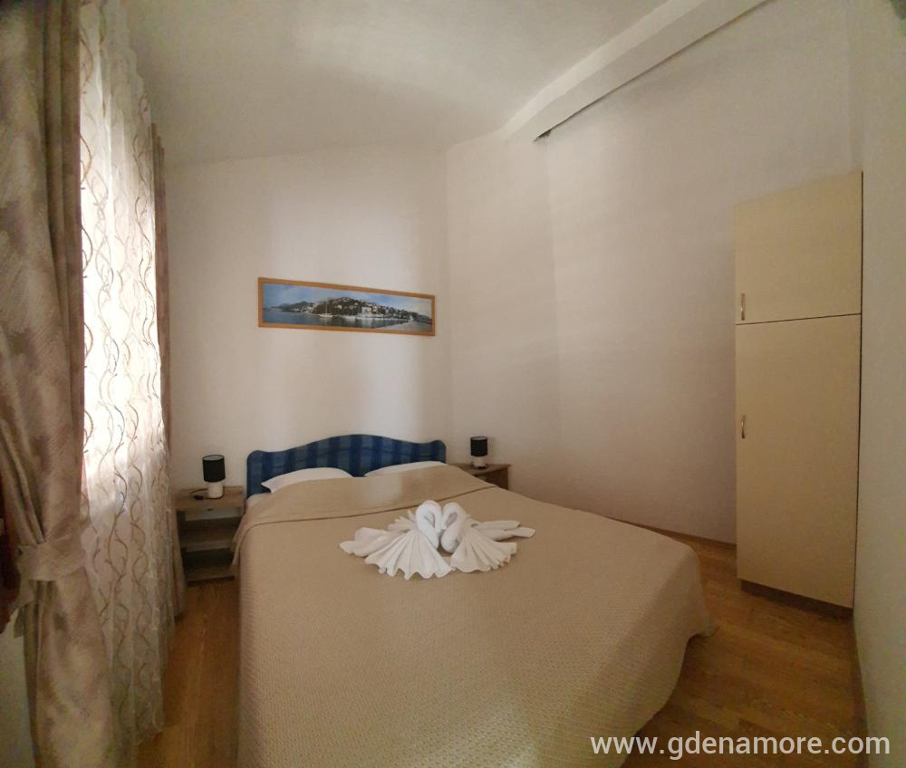 Dvokrevetna soba sa svojim kupatilom i terasom sa pogledom na more.Klima,kablovska,wi fi.Frižider.Mini kuhinja za potrebe doručka i večere