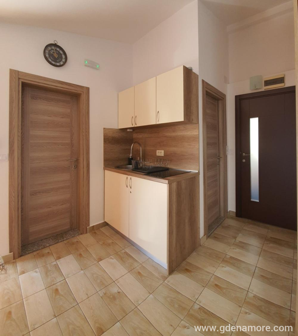 Kompletno renoviran apartman posjeduje odvojenu spavaću sobu,dnevni boravak sa ugaonom garniturom na razvlačenje,kuhinju,kupatilo i dvorište sa baštenskom garniturom za uživanje u prirodnom hladu vinove loze.Klima,veš mašina,total TV,wi fi.Parking obezbjeđen rampom i video nadzorom